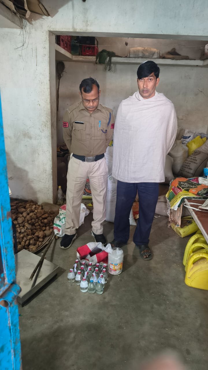 सक्ती कलेक्टर के निर्देश पर और प्रभारी जिला आबकारी अधिकारी के मार्गदर्शन में आज दिनांक17/12/25 को आबकारी वृत्त जैजैपुर में दौरान गश्त मुखबिर द्वारा ग्राम *तुमीडीह में *जितेंद्र कुमार रात्रे पिता हेमचरण द्वारा अपने किराना दुकान में शराब का अवैध बिक्री की सूचना पर तत्काल मय स्टाफ जांच कार्यवाही करने पर उसके दुकान से संज्ञान आधिपत्य से कुल 5.74 लीटर देशी एवं महुआ शराब बरामद* होने पर धारा 34(2) के तहत प्रकरण कायम कर गिरफ्तार कर न्यायिक रिमांड पर जेल निरुद्ध किया गया ।