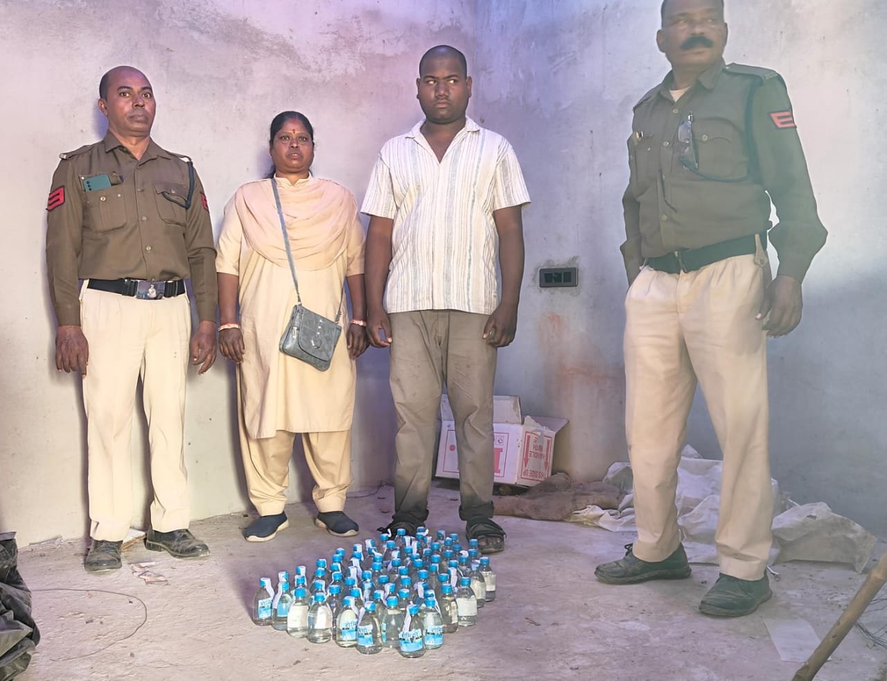 सक्ती कलेक्टर श्री अमृत विकास तोपनो  के निर्देश पर और प्रभारी जिला आबकारी अधिकारी के मार्गदर्शन में आज दिनांक 19/01/26 को आबकारी वृत्त डभरा  में दौरान गश्त मुखबिर द्वारा *ग्राम चंदली थाना चंद्रपुर* में *कृपा शंकर सिदार पिता धनुर्जय सिदार* उम्र 22 वर्ष के द्वारा अपने घर में अवैध शराब को विक्रय करने के लिए रखने की मुखबिर सूचना पर तत्काल मय स्टाफ जांच कार्यवाही करने पर उसके रहवासी मकान से एक प्लास्टिक बोरी में रखा 68 नग कांच की शीशी प्रत्येक में 180-180 ml भरी *कुल 12.24 लीटर देशी प्लेन मदिरा* बरामद होने से धारा 34(2) के तहत प्रकरण कायम कर गिरफ्तार कर न्यायिक रिमांड पर आरोपी को जेल निरुद्ध किया गया ।