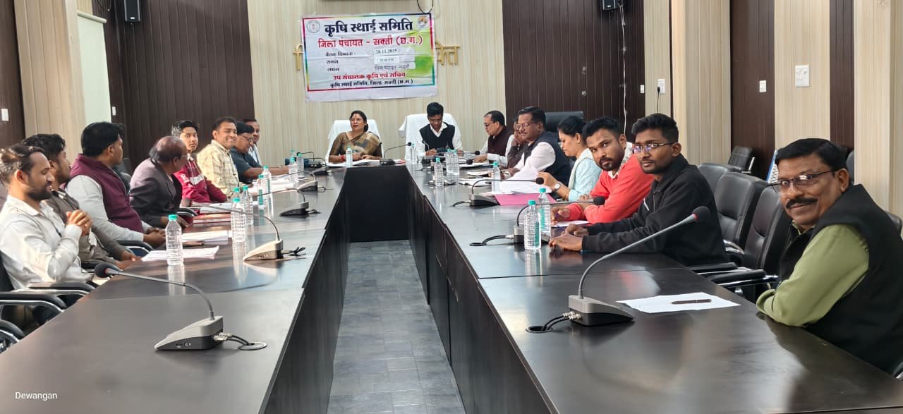 सक्तीः- कृषि स्थायी समिति की जिला स्तरीय बैठक दिनांक 28.11.2025 को जिला पंचायत सक्ती के सभाकक्ष में सभापति श्रीमति विद्या सिदार की अध्यक्षता में संपन्न हुई। इस दौरान कृषि, मत्स्य, पशधनु, जल संसाधन, उद्यान, कृषि उपज मंडी, जिला सहकारी केन्द्रीय बैंक मर्या., भूमि संरक्षण, मार्कफेड विभाग एवं अन्य विभाग के जिला स्तरीय अधिकारी एवं कर्मचारी उपस्थित हुये।