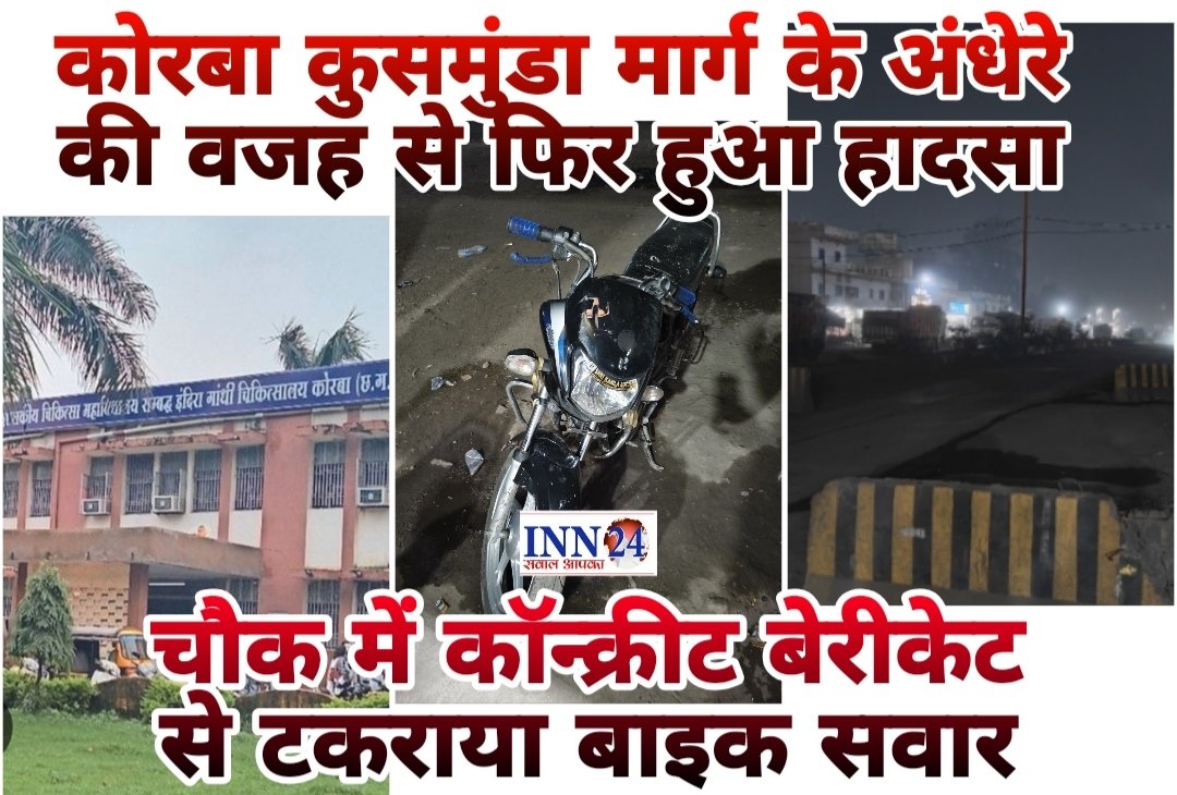 कोरबा कुसमुंडा मार्ग में फिर हुआ हादसा, तेज रफ्तार बाइक सवार कॉन्क्रीट के बेरीकेट से टकराया,गंभीर हालत में SECL के एम्बुलेंस ने जिला अपस्ताल पहुंचाया…डॉक्टर ने मदद करने पहुंचे एंबुलेंस के चालक को घायल के परिजन आने तक रुकने को कहा….इधर पेट्रोल नहीं मिलने से परिजन रास्ते में फंसे…