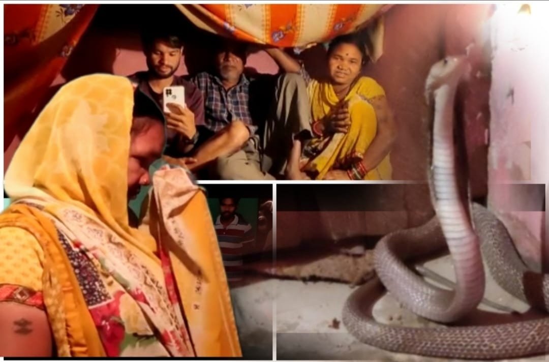 ज़मीन में रेंगने वाली मौत कोबरा सांप अचानक से एक छोटे से कमरे में घूस गया वहीं परिवार की महिला खाना बनाने की तैयारी कर रही थीं जब अचानक से कोबरा पर नज़र पड़ी तो परिवार की जान अटक गई