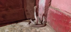 ज़मीन में रेंगने वाली मौत कोबरा सांप अचानक से एक छोटे से कमरे में घूस गया वहीं परिवार की महिला खाना बनाने की तैयारी कर रही थीं जब अचानक से कोबरा पर नज़र पड़ी तो परिवार की जान अटक गई