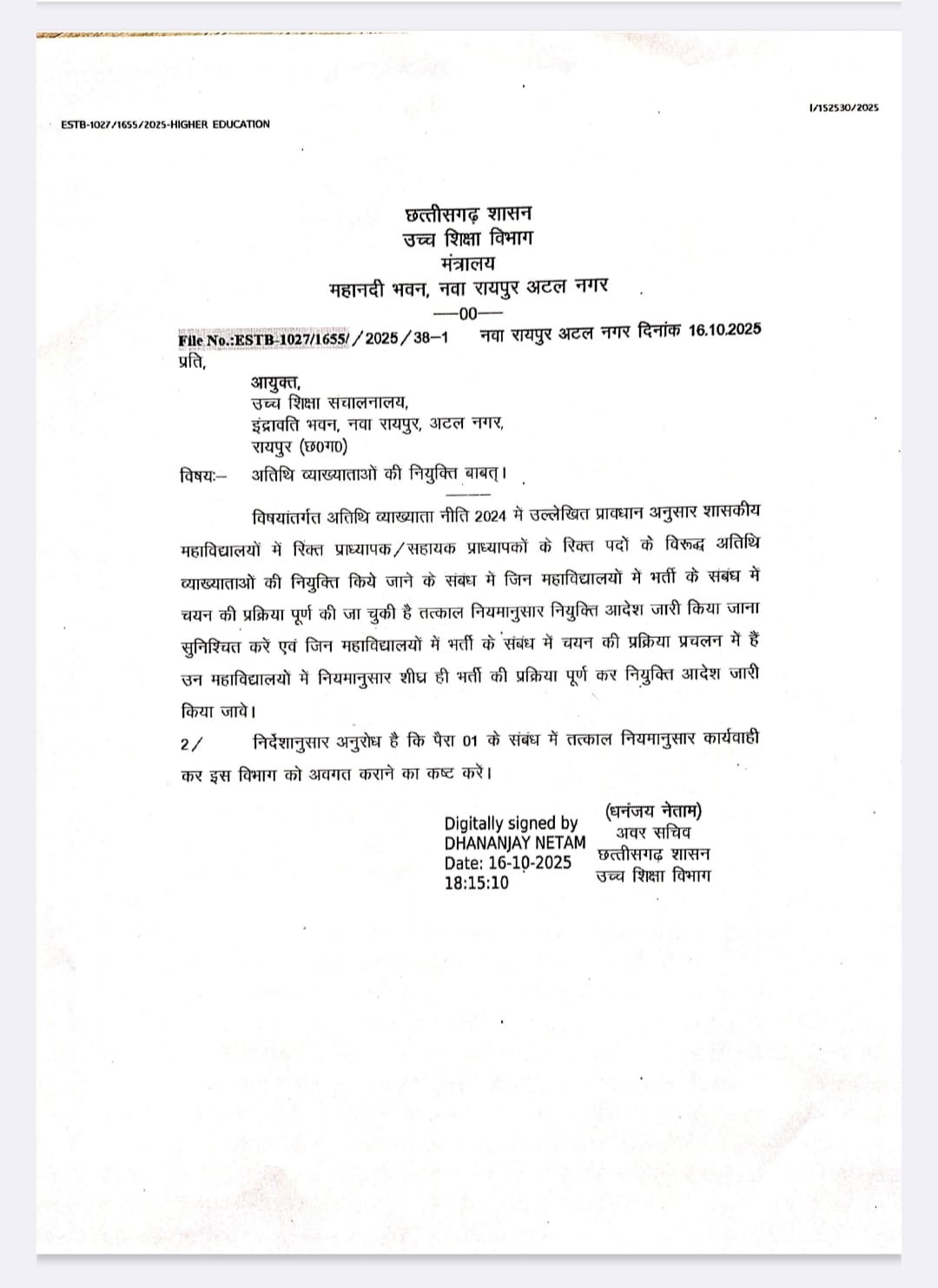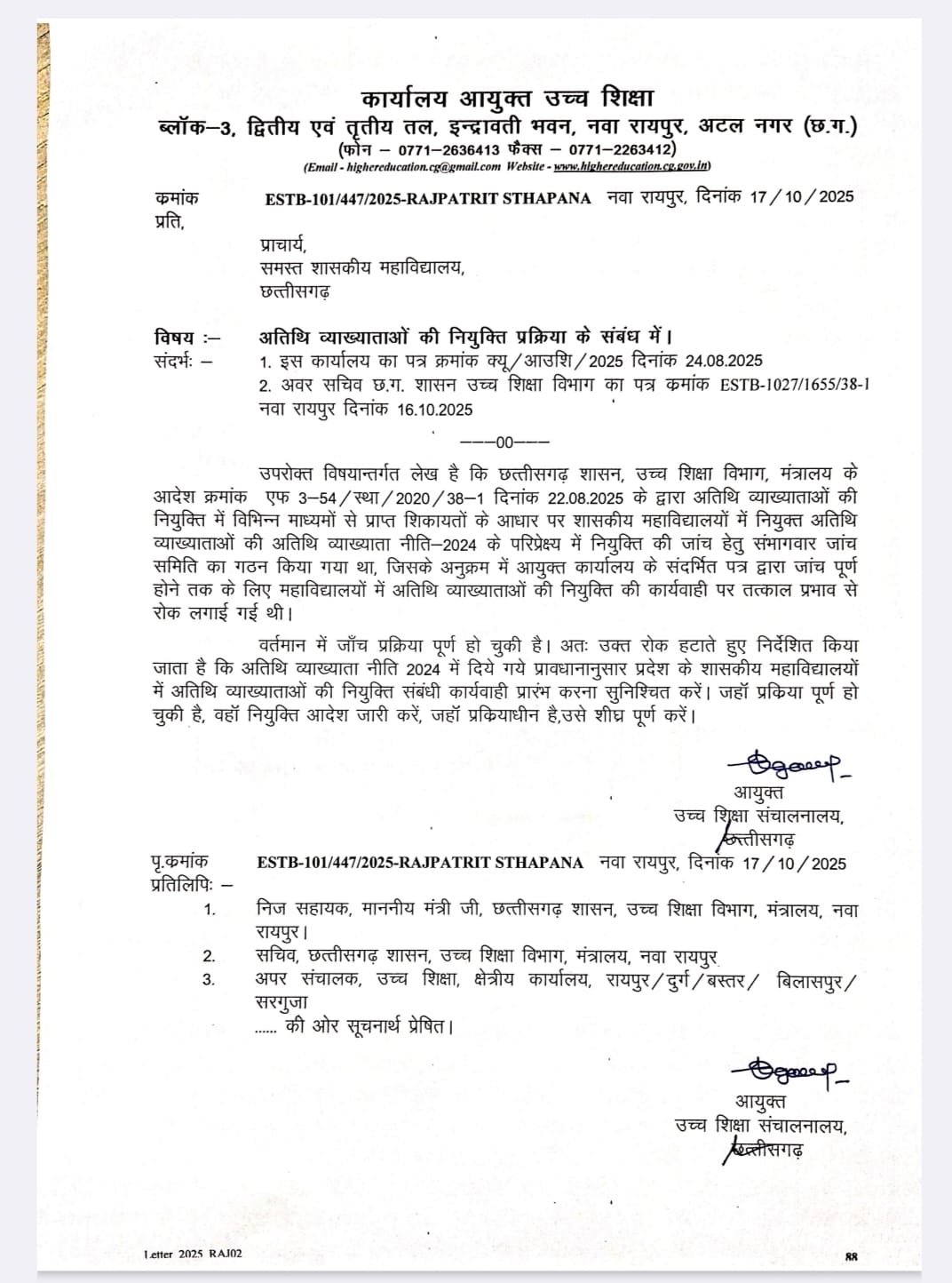 इसी संदर्भ में जैनेन्द्र कुर्रे ने 13 अक्टूबर 2025 को उच्च शिक्षा विभाग को एक कड़ा पत्र प्रेषित कर मांग की थी कि: