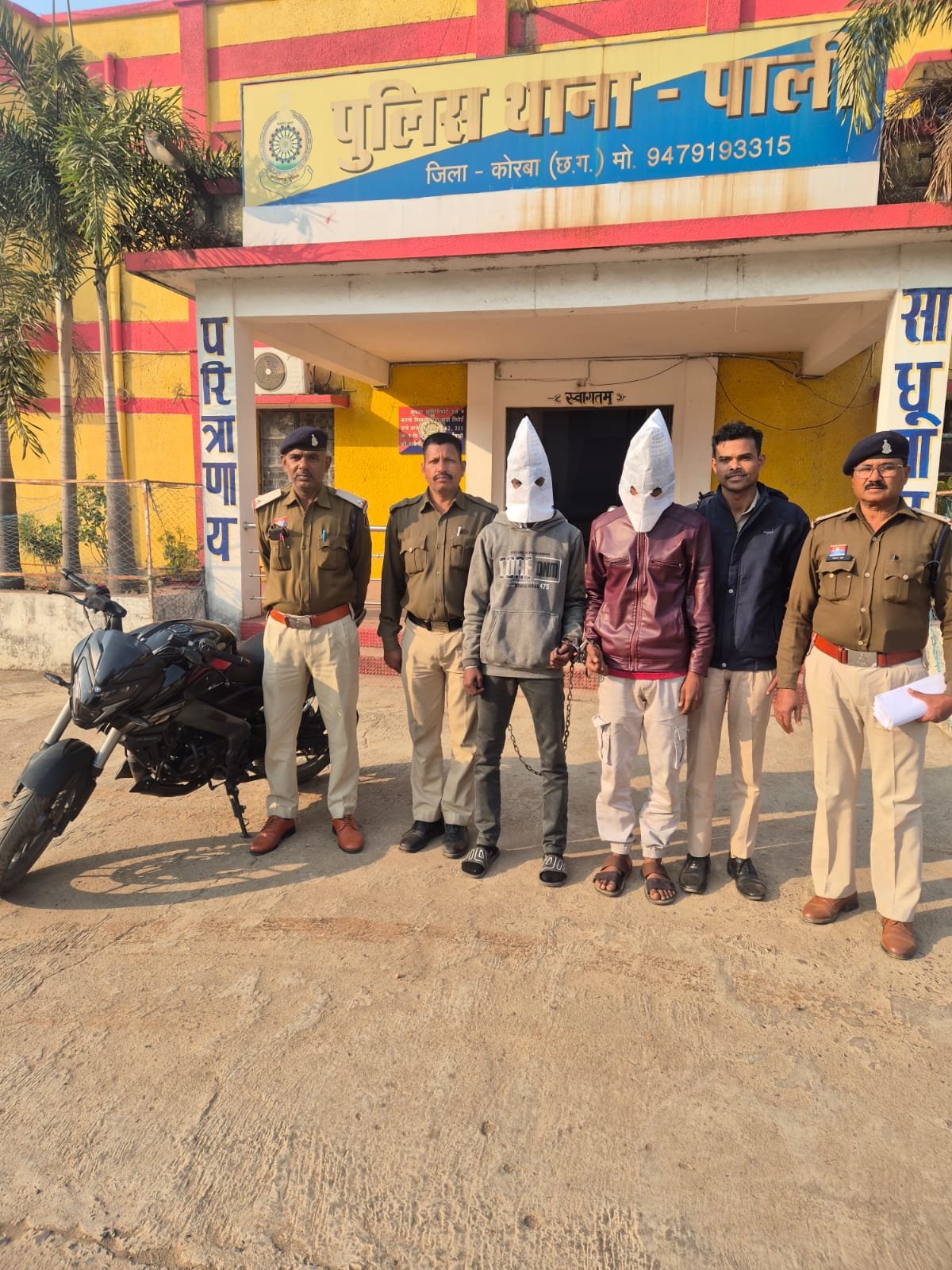 कोरबा – पेट्रोल पंप लूट घटना के आरोपियों को पुलिस ने किया गिरफतार, बाईक एवं चाकू जप्त