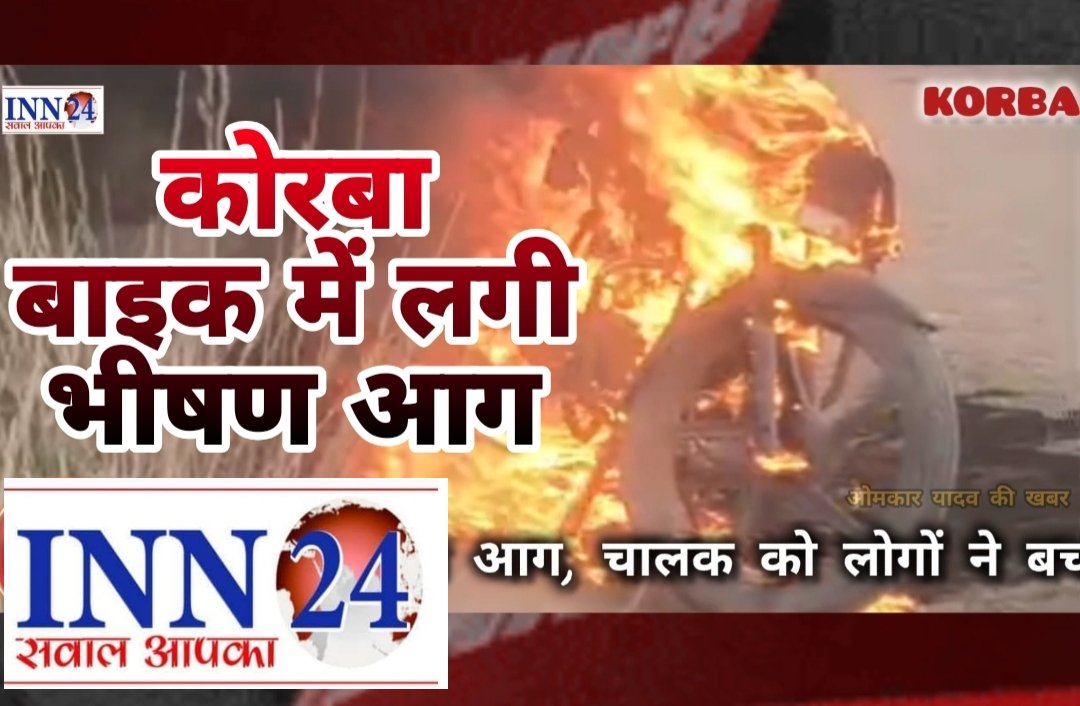 कोरबा – बाइक में लगी भीषण आग,चालक को लोगों ने बचाया