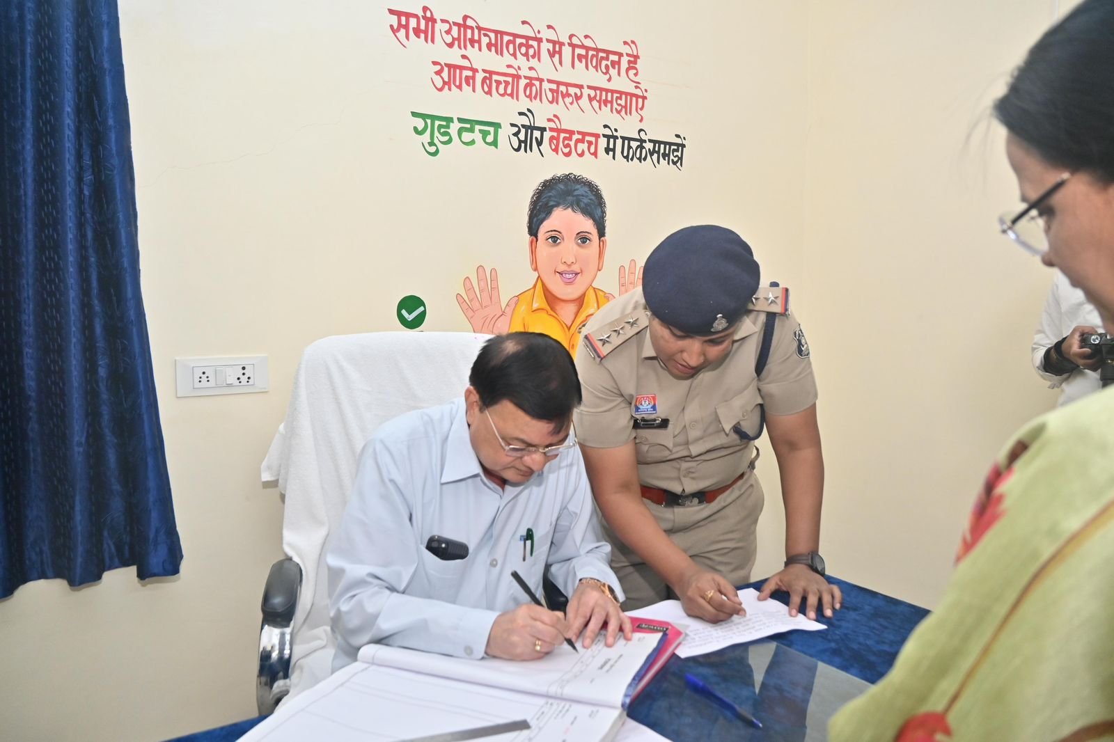 इस अवसर पर मंत्री श्री देवांगन ने विभिन्न परीक्षाओं में उल्लेखनीय प्रदर्शन करने वाले इस परिवार के बच्चों को सम्मानित किया। थाना परिसर में एक वाटर कूलर की स्थापना की भी घोषणा की। साथ ही गर्मी में लगने वाले आमतौर पर आग से बचाव के उपाय हेतु पाम्पलेट का भी विमोचन किया