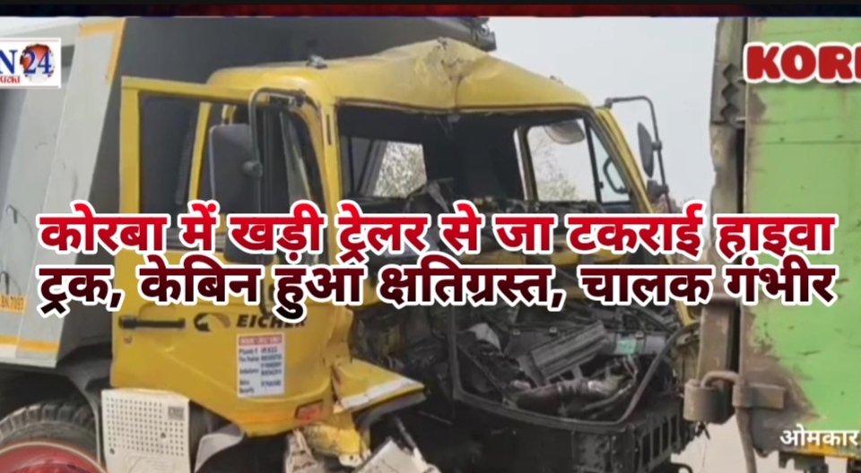 कोरबा में खड़ी ट्रेलर से जा टकराई हाइवा ट्रक, केबिन हुआ क्षतिग्रस्त, चालक गंभीर