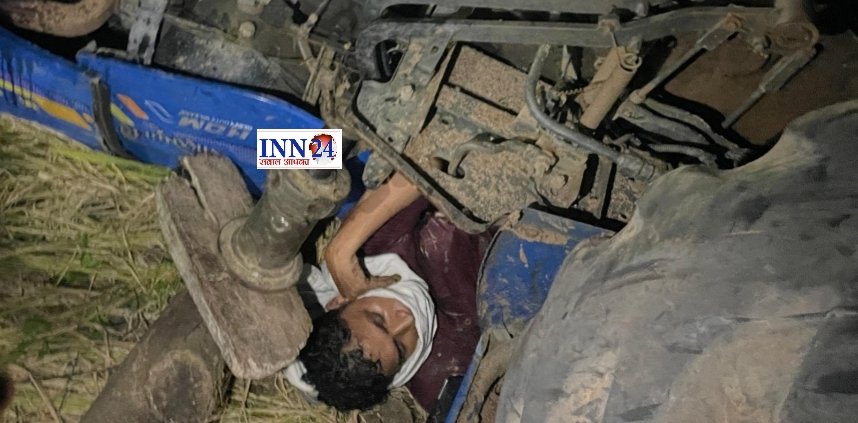 कोरबा – रेत से भरा ट्रैक्टर पलटा, ड्राइवर और हेल्फर दबे..