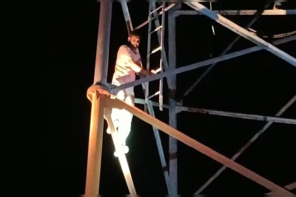 टावर पर चढ़कर 6 घंटे हाई वोल्टेज ड्रामा, मनाती रही पुलिस तभी कूदने के लिए लटक गया शराबी..