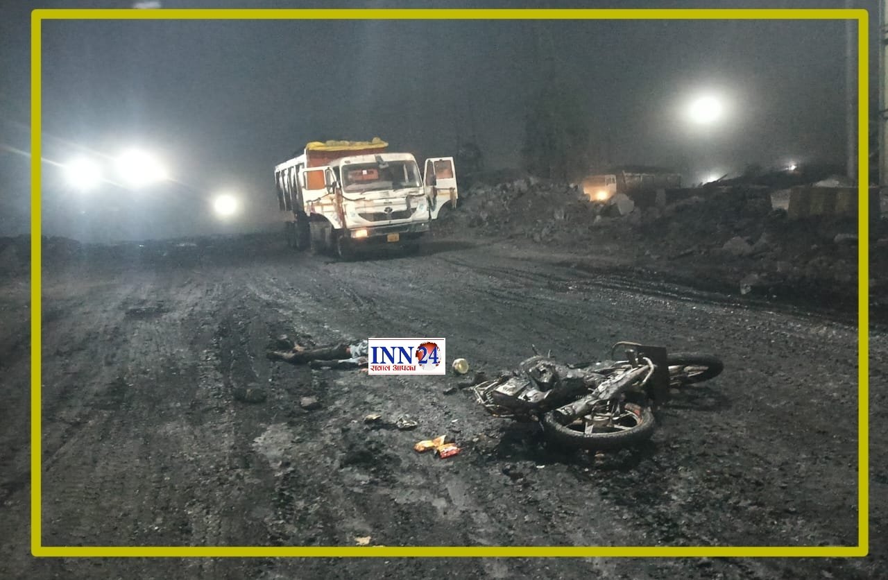 दीपका खदान में फिर हुआ हादसा,बाइक सवार युवक को भारी वाहन ने कुचला,मौत