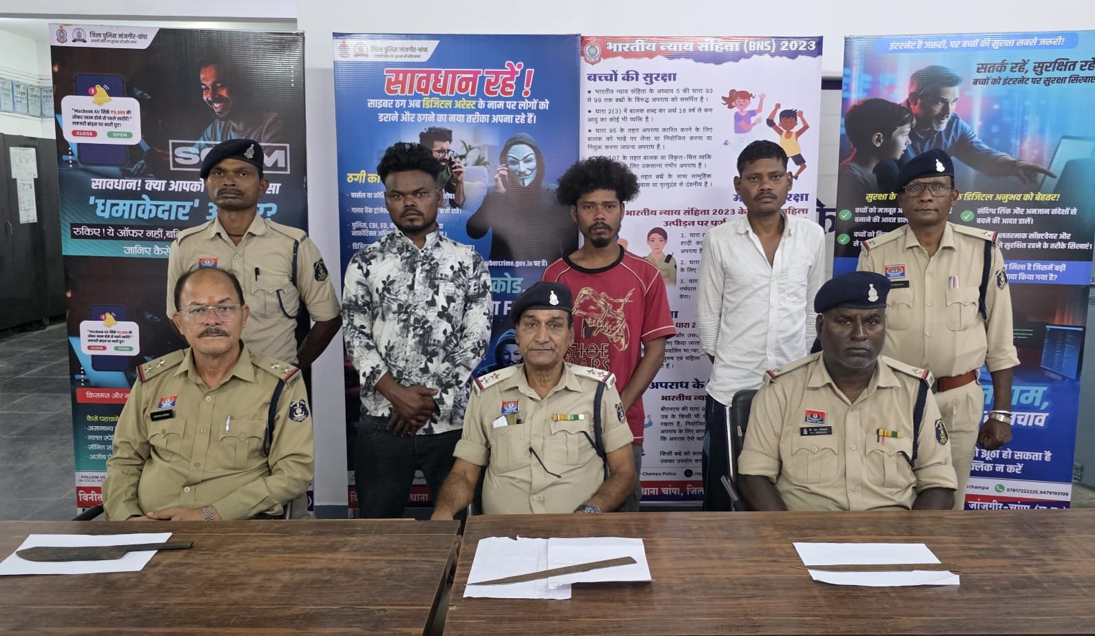 धारदार हथियार लहराकर आने-जाने वाले लोगों को डराने वाले 03 आरोपी चढ़े थाना चांपा पुलिस के हत्थे