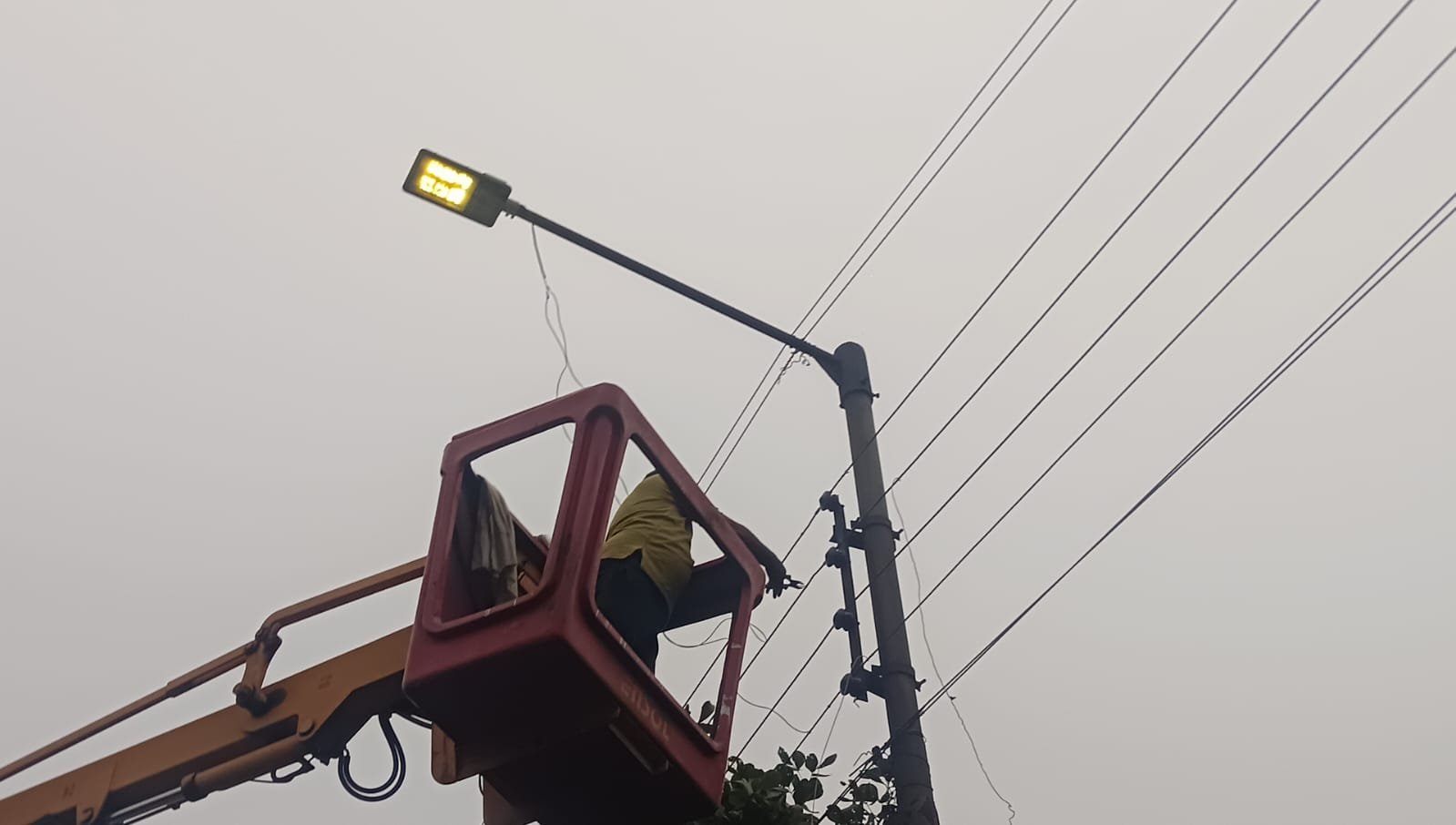 नवरात्रि से पूर्व विकास झा के द्वारा परिषद् क्षेत्र में पहुंचकर बंद पड़े स्ट्रीट लाइट को करवाया चालू