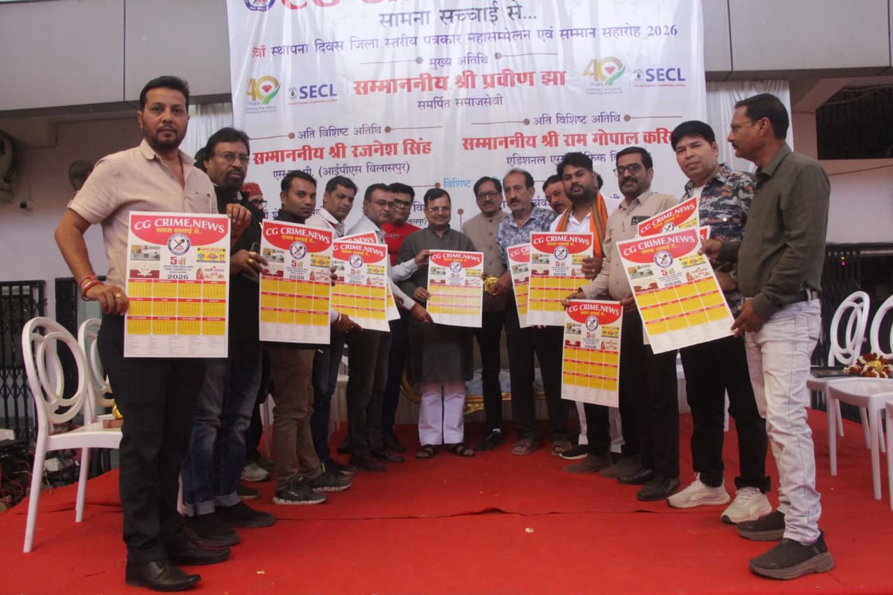 बिलासपुर न्यायधानी बिलासपुर के पूज्य सिंधी पंचायत भवन में रविवार, 8 फरवरी 2026 को ‘सीजी क्राइम न्यूज़’ का पांचवां स्थापना दिवस समारोह अत्यंत भव्य, गरिमामयी और उत्साहपूर्ण वातावरण में संपन्न हुआ। इस अवसर पर पत्रकारिता के प्रति समर्पण, समाजसेवा का संकल्प और सांस्कृतिक विविधताओं का एक अद्भुत समन्वय देखने को मिला। कार्यक्रम में शहर के वरिष्ठ पत्रकारों, प्रशासनिक अधिकारियों और गणमान्य नागरिकों ने अपनी उपस्थिति से आयोजन की शोभा बढ़ाई।