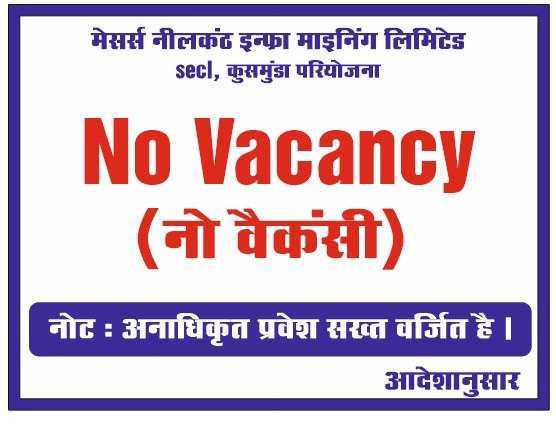 उक्त घटनाक्रम के बाद नीलकंठ इंफ्रा माइनिंग लिमिटेड के प्रबंधन एवं SECL कुसमुंडा कमेटी ने स्पष्ट किया है कि कंपनी में वर्तमान में कोई भी पद रिक्त नहीं है। इसी के मद्देनजर कंपनी द्वारा “नो वेकेंसी” संबंधी सूचना नोटिस बोर्ड पर चस्पा कर दी गई है। कंपनी प्रबंधन ने आमजन एवं रोजगार की तलाश कर रहे युवाओं से अपील की है कि किसी भी प्रकार की भर्ती की अफवाहों पर ध्यान न दें। अनावश्यक रूप से न तो नीलकंठ खदान परिसर और न ही कंपनी कार्यालय में भर्ती के संबंध में संपर्क करें। भविष्य में यदि किसी भी प्रकार की भर्ती होगी, तो उसकी आधिकारिक सूचना विधिवत जारी की जाएगी।