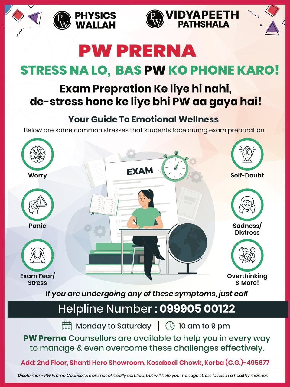 परीक्षा के दबाव के दौर में विद्यार्थियों के लिए सहारा बना PW — कोरबा में “प्रेरणा” हेल्पलाइन की शुरुआत, तनाव से जूझ रहे छात्रों को मिलेगा सीधा मार्गदर्शन