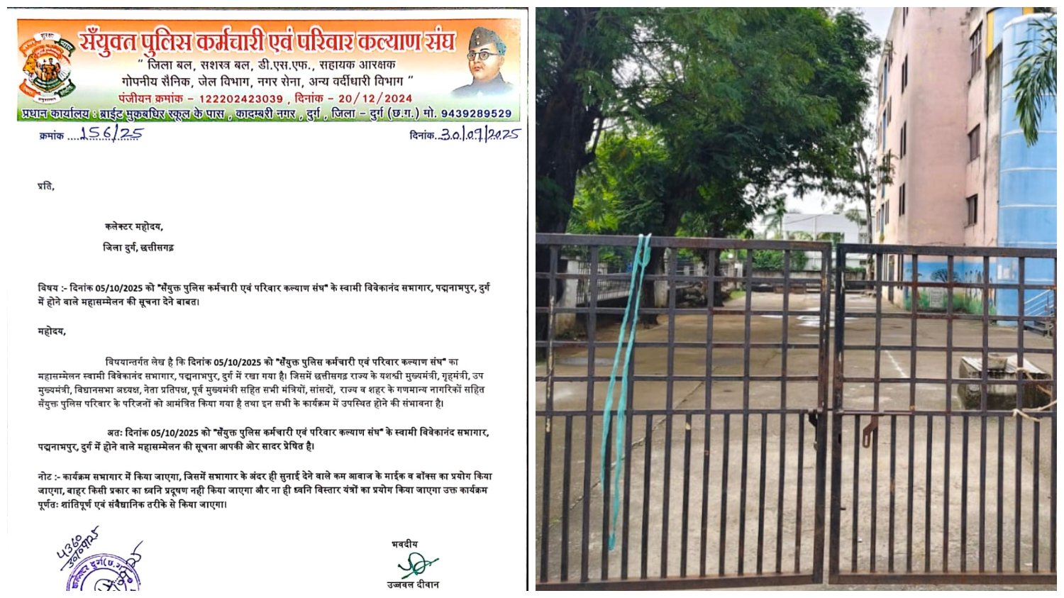 बड़ी ख़बर : पुलिस परिवार के महासम्मेलन को रोकने की रची जा रही है शाजिस… दुर्ग जिले के प्रशासनिक अधिकारियों पर लगा आरोप… विवेकानन्द भवन के मेन गेट पर लगवाया ताला