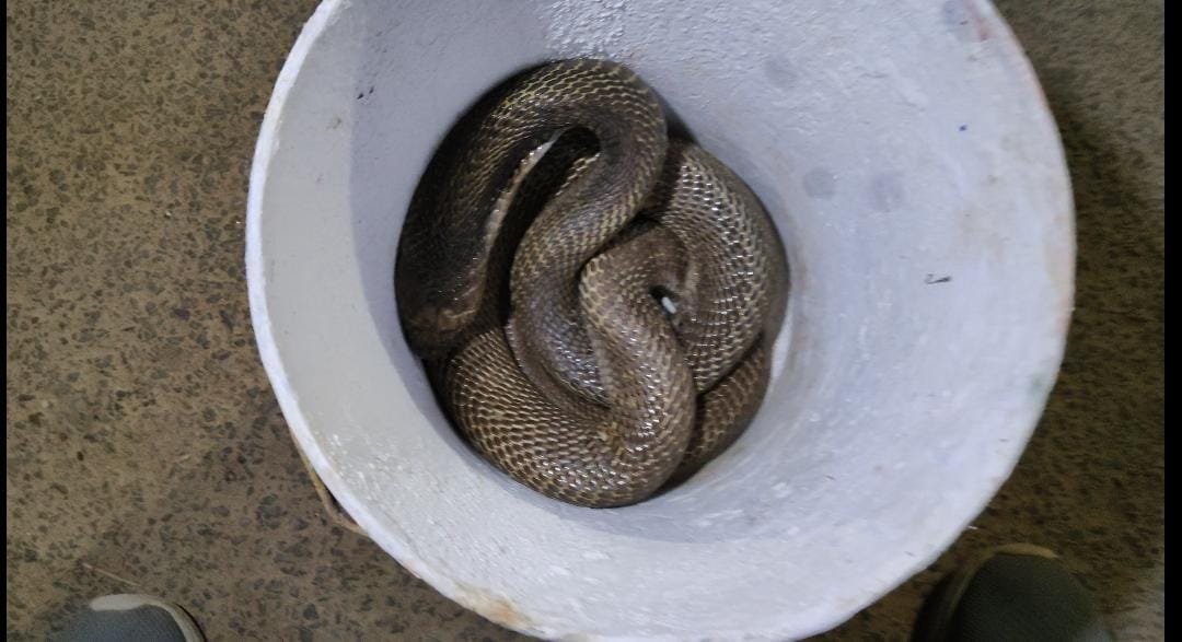 बाल्टी में घुस कर बैठ गया विशालकाय नाग,जितेन्द्र सारथी ने किया सफल रेस्क्यू