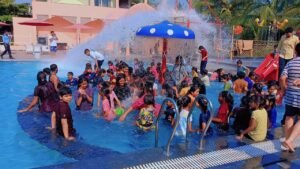 पूल स्थान पर पहुँचकर विद्यार्थीगण उत्साह एवं आनंद से भर उठे तथा शिक्षक-शिक्षिकाओं की देख-रेख में पूल पार्टी का आनंद लेने लगे। विद्यार्थियों द्वारा संगीत की मधुर ध्वनि के साथ रैन डान्स एवं पूल पार्टी का आनंद लिया गया। पूल पार्टी के पश्चात् विद्यार्थियों के लिए स्वल्पाहार में फ्रूट चाट की व्यवस्था की गई थी। समर कैम्प के अंतिम दिवस में विद्यार्थियों के साथ-साथ आए हुए अतिथि प्रशिक्षक एवं समस्त शिक्षक-शिक्षिकाएँ आनंदित नज़र आए। तत्पश्चात् विद्यार्थियों को शिक्षकों की देख-रेख में सकुशल संस्था प्रांगण लाया गया तथा गर्मी की छुट्टियों की घोषणा के साथ उन्हें घर तक पहुँचाया गया। इस समर कैम्प में लगभग 300 विद्यार्थी प्रतिभागी बनकर आर्ट एण्ड क्रॉफ्ट, पेपर मोल्डिंग, संगीत, कथक नृत्य, जुम्बा, कैनवा मल्टीमीडिया डिजाइन, बॉल गेम, आर्चरी, ट्रेजर हंट, वुड कारविंग, स्केटिंग, रंगोली एवं अन्य कलाओं का प्रशिक्षण लिए।