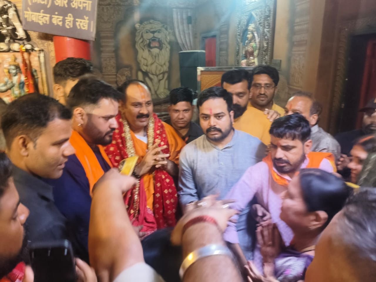 माँ सर्वमंगला देवी मंदिर परिसर में पंडित प्रदीप मिश्रा का भव्य स्वागत