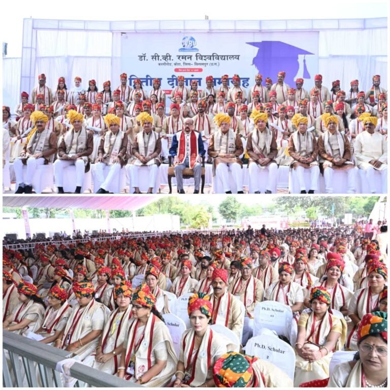 राज्यपाल श्री डेका ने सफलता के तीन मुख्य स्तंभों दृढ़ता, कड़ी मेहनत और अनुशासन पर जोर देते हुए कहा कि यही वे गुण हैं जो किसी भी व्यक्ति को लक्ष्य तक पहुंचा सकते हैं। उन्होंने विद्यार्थियों को अपने माता-पिता और समाज के प्रति आभार प्रकट करने की सीख दी। जितनी भी सफलता आप जीवन में प्राप्त करें, अपने माता-पिता और मूल्यों को कभी न भूलें। समाज ने हमें बहुत कुछ दिया है अब हमें सोचना है कि हमने समाज को क्या दिया। उन्होंने विद्यार्थियों को समय का प्रभावी प्रबंधन करने का सुझाव देते हुए कहा कि आपके पास आज समय और स्थान दोनों हैं।इनका सदुपयोग करें, क्योंकि यही आपकी सबसे बड़ी पूंजी हैं। राज्यपाल श्री डेका ने कहा कि शिक्षा केवल डिग्री नहीं, बल्कि चरित्र निर्माण का माध्यम होनी चाहिए। उन्होंने यह भी कहा कि शिक्षक और विद्यार्थी के बीच आपसी संवाद, विश्वास और प्रेरणा का रिश्ता होना चाहिए। शिक्षा समावेशी होनी चाहिए और सीखने की प्रक्रिया कभी समाप्त नहीं होती। अपने संबोधन के समापन में राज्यपाल ने सीवी रमन विश्वविद्यालय को भविष्य में एक प्रमुख शैक्षणिक संस्थान बनने की शुभकामनाएं दीं। उन्होंने आशा जताई कि यह विश्वविद्यालय आने वाले वर्षों में महत्वपूर्ण कीर्तिमान स्थापित करेगा।