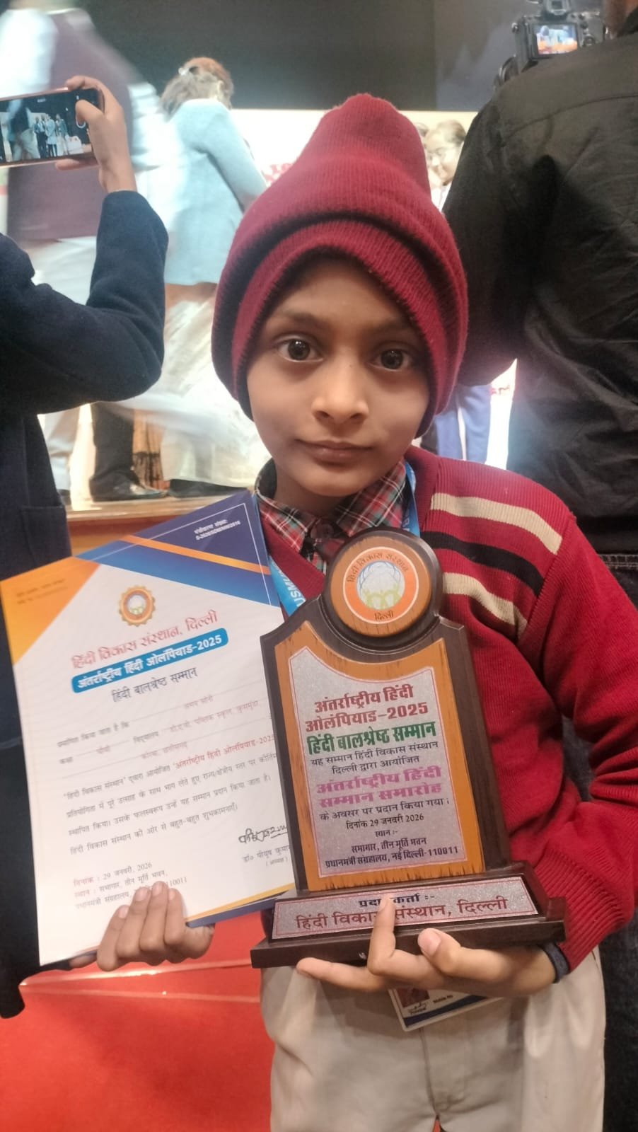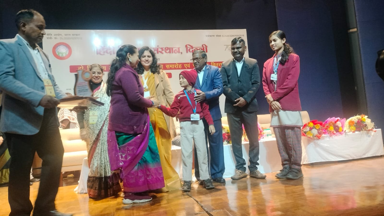 की उपस्थिति रही। देश के अनेक राज्यों से बच्चों के अभिभावक एवं संबंधित स्कूल के शिक्षक अपने विद्यार्थियों के साथ इस सम्मान को पाने के लिए उपस्थित रहे। डी.ए.व्ही. पब्लिक स्कूल एसईसीएल कुसमुंडा से पुरस्कृत होने वाले इन विद्यार्थियों के साथ ही हिंदी विषय की शिक्षक श्रीमती विनीता तिवारी एवं स्कूल के प्राचार्य श्री चंद्र मोहन पांडे जी को भी प्रमाण पत्र से पुरस्कृत किया गया। पूरा हॉल जय हिंद-जय हिंदी के नारों से गूंजायमान रहा। हिंदी विकास संस्थान नई दिल्ली के अध्यक्ष डॉ. पीयूष कुमार शर्मा जी ने अपने उद्बोधन में बताया कि प्रारंभ के वर्षों में इस आयोजन में भाग लेने के लिए बच्चों में एवं विद्यालयों द्वारा बहुत कम रुचि दिखाई देती थी जो साल दर साल बढ़ते हुए आज स्थिति में पहुंच गया हैं कि सभागार हाल में विद्यार्थियों एवं उनके साथ आए शिक्षक अथवा अभिभावक के बैठने के लिए जगह की कमी पड़ने लगी।