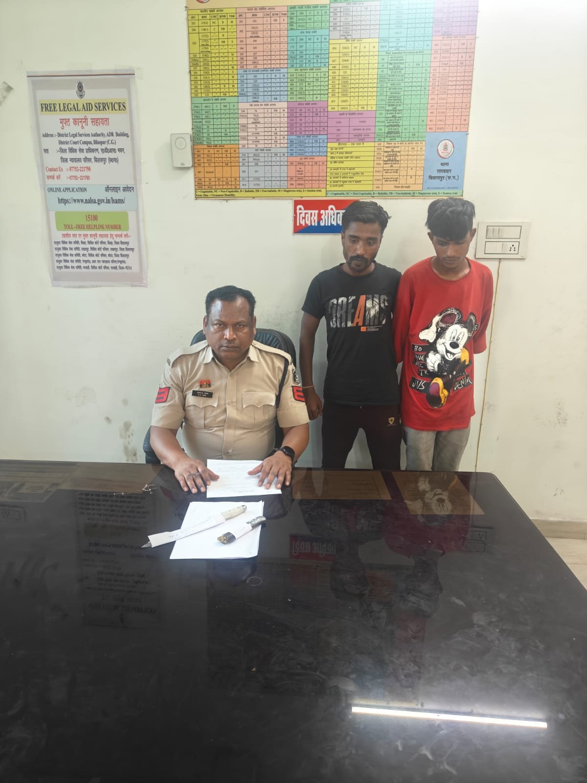 बिलासपुर ,तारबाहर-दिनांक 09.04.2025 के रात्रि में चेक गस्त डियूटी के दौरान मुखबीर से सूचना मिली कि तारबाहर अंडरब्रीज के पास सार्वजनिक स्थान पर दो व्यक्ति हाथ में धारदार चाकू लेकर चाकू को लहरा कर डियूटी आने जाने वाले रेल्वे कर्मचारियो को डरा धमका रहा है कि सूचना पर थाना प्रभारी कृष्णचंद सिदार द्वारा हमराह स्टाफ के तत्काल मौके पर पहुचा तो आरोपी पुलिस को देखकर भाग रहा था जिसे घेराबंदी कर दौडाकर पकडा गया। आरोपी प्रदीप गोड एवं विकास बंजारे के कब्जे से एक-एक नग धारदार चाकू को जप्त कर आरोपी को गिरफ्तार कर माननीय न्यायालय में पेश किया गया है।