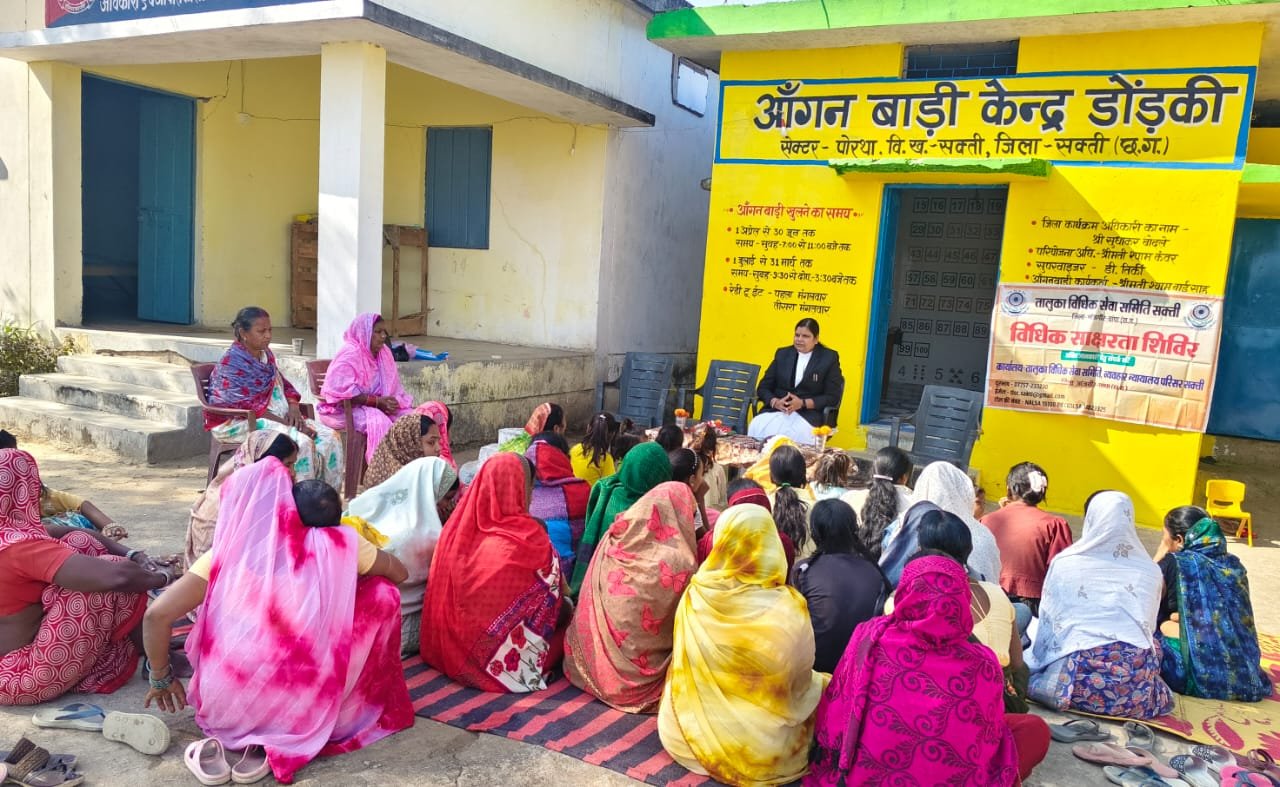आज दिनांक 24/12/25 जिला विधिक सेवा प्राधिकरण जांजगीर के तत्वावधान में आंगनबाड़ी केंद्र डोंडकी में विधिक साक्षरता एवं जागरूकता शिविर का आयोजन किया गया। इस शिविर में मुख्य अतिथि श्रीमति गंगा पटेल अपर सत्र न्यायाधीश सक्ती उपस्थित रही। शिविर का मुख्य उद्देश्य ग्रामीण अंचल की महिलाओं को उनके कानूनी अधिकारों और कर्तव्यों के प्रति जागरूक करना था। कार्यक्रम को संबोधित करते हुए न्यायाधीश महोदया ने कहा कि कानून की जानकारी के अभाव में कई बार ग्रामीण अपने अधिकारों से वंचित रह जाते हैं। उन्होंने जोर देकर कहा कि “न्याय पाना हर नागरिक का अधिकार है, चाहे वह अमीर हो या गरीब।” उन्होंने ग्रामीणों को बताया कि यदि कोई व्यक्ति आर्थिक रूप से कमजोर है, तो वह ‘निःशुल्क विधिक सहायता के माध्यम से सरकारी खर्च पर वकील और कानूनी मदद प्राप्त कर सकता है।