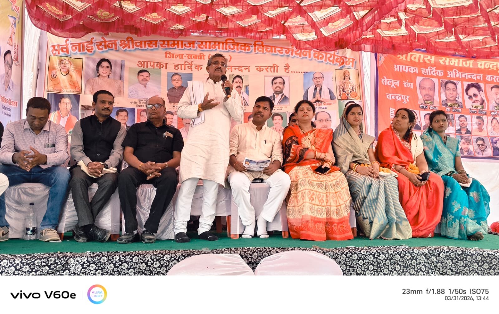 सक्ती सर्व नाई सेन/श्रीवास समाज का विचार मंथन कार्यक्रम मां नाथल दाई के प्रांगण चंद्रपुर में 31 मार्च 26 को सकराली परिक्षेत्र द्वारा आयोजित किया गया। इस कार्यक्रम में चंद्रपुर विधायक राम कुमार यादव मुख्य अतिथि रहे। इस दौरान चंद्रपुर विधायक रामकुमार यादव ने नाई समाज को सामाजिक भवन निर्माण हेतु हेतु दस लाख रुपये देने की घोषणा की है । विशिष्ट अतिथि सर्व नाई सेन/श्रीवास समाज पंजियन 82का प्रांताध्यक्ष पुनित राम सेन , प्रदेश अध्यक्ष कर्मचारी अधिकारी प्रकोष्ठ लोकनाथ सेन, जिला अध्यक्ष सक्ती ईंदल सिंह श्रीवास, जिला अध्यक्ष बालोद संतोष कौशिक, जिला अध्यक्ष महासमुंद नरेंद्र सेन, पूर्व जिला अध्यक्ष कोरबा मोहन श्रीवास, संरक्षक सत्यवान् श्रीवास, संरक्षक जगन कौशिक, बालोद सचिव जनक कौशिक , जिला अध्यक्ष बलौदा बाज़ार बसंत श्रीवास , जिला अध्यक्ष सारंगढ़ रूपेश कौशिक, सचिव कसडोल मुरित श्रीवास, सालिक श्रीवास , मदन श्रीवास , भीमेश्वरी श्रीवास महिला प्रकोष्ठ, जय प्रकाश श्रीवास, भुवनेश्वर श्रीवास युवा प्रकोष्ठ, सुरज श्रीवास और सकराली परिक्षेत्र के सभी पदाधिकारी और समाज के स्वजातिय बंधुओं सैकड़ो के सख्या में उपस्थित रहे और कार्यक्रम की अध्यक्षता दीनानाथ श्रीवास प्रदेश संगठन मंत्री एवं अध्यक्षता सकराली परिक्षेत्र द्वारा किया गया।