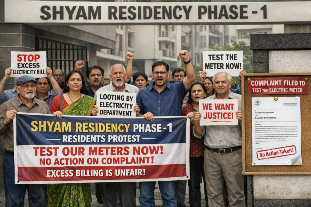 स्मार्ट मीटर बदलने के बाद बढ़े बिजली बिल से श्याम रेजीडेंसी फेज 1 में आक्रोश, जांच की मांग के बावजूद कार्रवाई नहीं