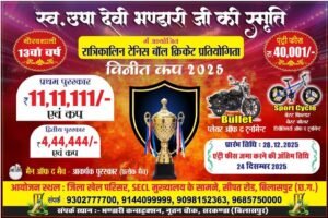 स्वर्गीय माता ऊषा देवी भंडारी जी के स्मृति में क्रिकेट टूर्नामेंट का आयोजन शुभारंभ 28 दिसंबर से