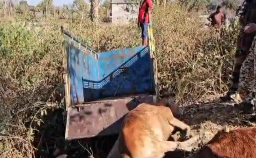 छत्तीसगढ़ से झारखंड ले जाई जा रही थीं 10 गायें, पुलिस की घेराबंदी में हादसा, 3 की मौके पर मौत
