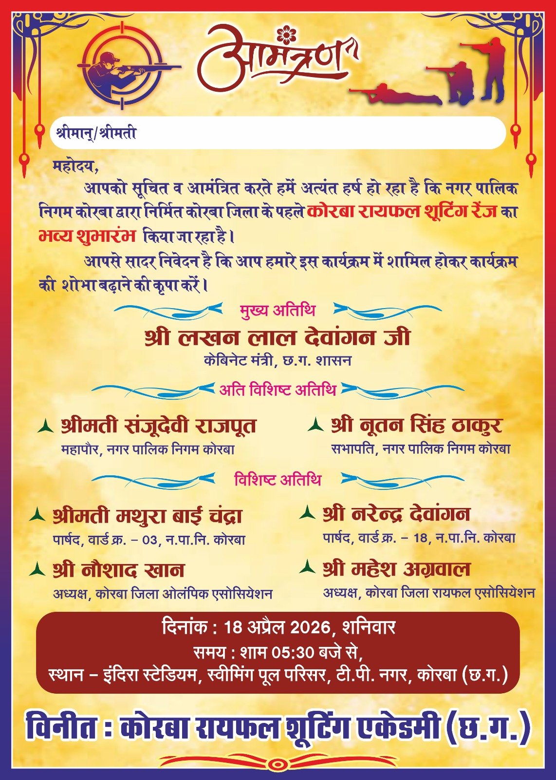 कोरबा में रायफल शूटिंग एकेडमी का आज होगा भव्य शुभारंभ..
