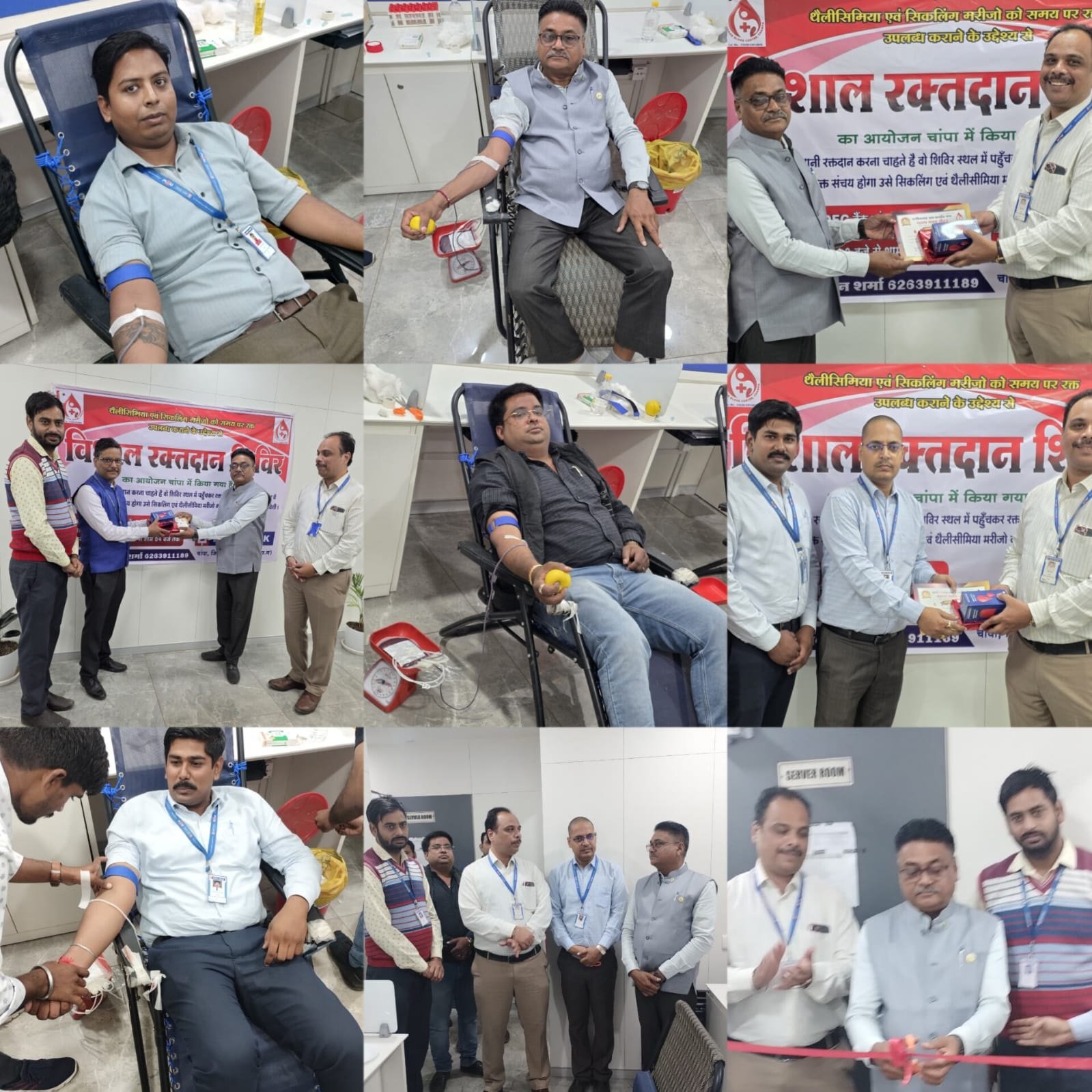 जांजगीर चांपा जिले का सबसे बड़ा ब्रांच है जो कि आज विशाल रक्तदान शिविर का आयोजन ब्रांच के अंदर किया गया जिसके मुख्य अतिथि के रूप में लायंस क्लब चांपा के पूर्व अध्यक्ष श्री लायन राजेश अग्रवाल, बिलासपुर कोरबा क्लस्टर हेड श्री अमित दुबे , ब्रांच हेड रमेश झा , डब्लू बी ओ हेड पवन शर्मा ,पी बी ए विकास पलरिया,रोहित कुमार ,अनुज पांडे, आशीष अग्रवाल राष्ट्रीय संवाददाता inn 24 न्यूज़ एवं समस्त बैंक के स्टाफ एवं अतिथिगढ़ के सौजन्य से आज का कार्यक्रम प्रारंभ हुआ और यह कार्यक्रम हर साल दिसंबर माह के प्रथम शुक्रवार को होता है गिनीज बुक ऑफ वर्ल्ड रिकॉर्ड्स में बैंक ने 6 दिसंबर 2013 को 709 स्थानों पर 1,115 रक्तदान शिविर आयोजित करके रक्तदान का विश्व रिकॉर्ड बनाया, जिसमें 61,902 लोगों ने रक्तदान किया।प्रौद्योगिकी और नवाचार: बैंक ने बैंकिंग, वित्तीय सेवाओं और बीमा में प्रौद्योगिकी अपनाने के लिए पुरस्कार जैसे सम्मान भी जीते हैं।