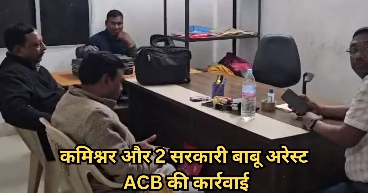 यहां एसीबी की टीम ने संभागीय कमिश्नर पीसी अग्रवाल और बाबू अनिल सिंह को गिरफ्तार किया है. आरोप है कि कमिश्नर ने एक ठेकेदार से काम के बदले 50 हजार रुपये की मांग की थी. एसीबी ने दबिश देकर दोनों को मौके पर ही धर दबोचा. फिलहाल दोनों आरोपियों को दफ्तर लाकर विस्तृत पूछताछ की जा रही है.