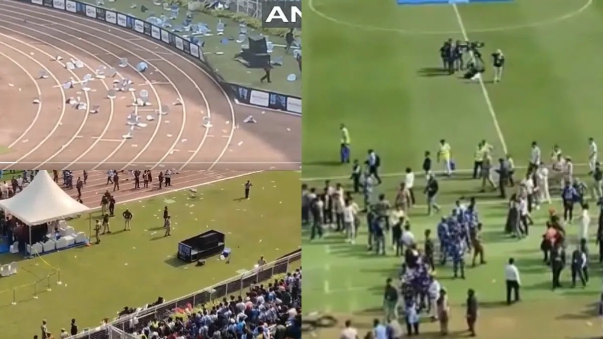 यहीं नहीं फैन्स ने स्टेडियम में हंगामा कर दिया है. फैन्स अंदर घुसकर स्टेडियम को नुकसान पहुंचा रहे हैं. लोगों का गुस्सा सातवें आसमान पर चढ़ गया है. फैन्स का रिएक्शन सोशल मीडिया पर खूब वायरल हो रहा है.