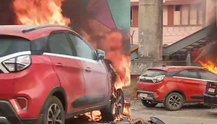 बताया जा रहा है कि मंगलवार को लाल रंग की टाटा नेक्सौन देखते ही देखते धूं-धूं कर जल उठी. वायरल वीडियो सिविल लाईन थाना इलाके का है. घटना वाले मार्ग पर वाहनों की आवाजाही अधिक होती है, जिसके चलते लोगों में हड़कंप मच गया.