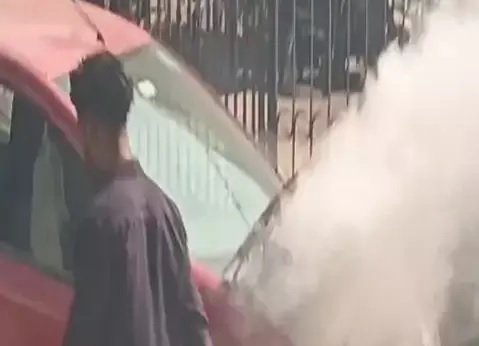शॉर्ट सर्किट से कार में भड़की आग, मिस्त्री की तत्परता से टला बड़ा हादसा