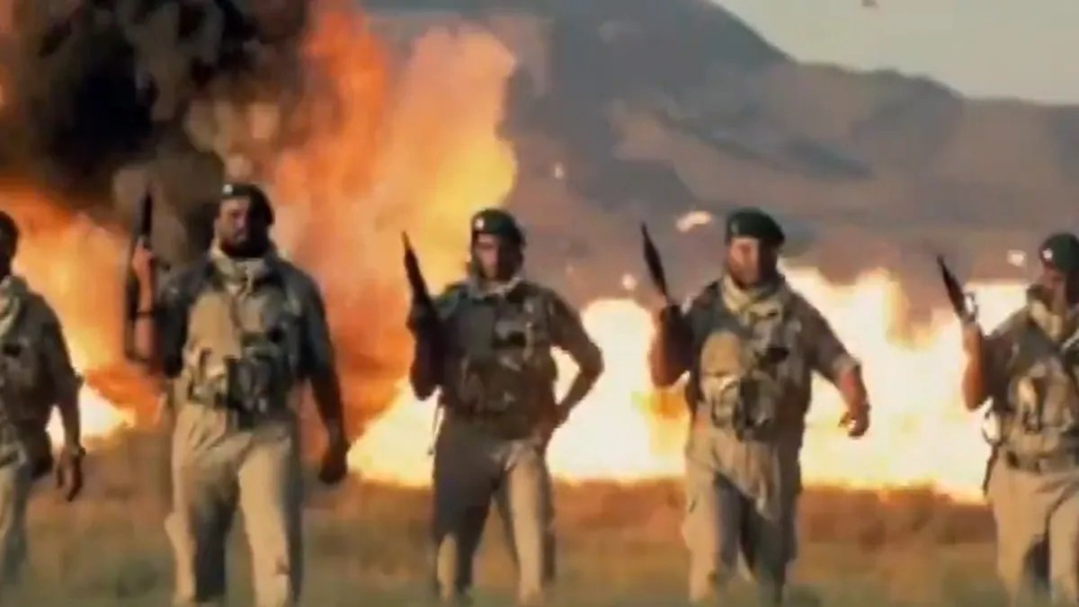 वीडियो में दिखाई दे रहा है कि ईरानी सैनिक युद्ध का अभ्यास कर रहे हैं और एक बड़ा मिसाइल लॉन्चर वाहन अपने साथ रखे हुए हैं। वीडियो में सैनिक फायरिंग करते हुए भी दिखते हैं और जगह-जगह विस्फोट के भी विजुअल्स हैं। वीडियो में ये दर्शाया गया है कि ईरानी सुरक्षाबल पूरी तरह तैयार हैं और अमेरिका का डटकर सामना किया जाएगा।