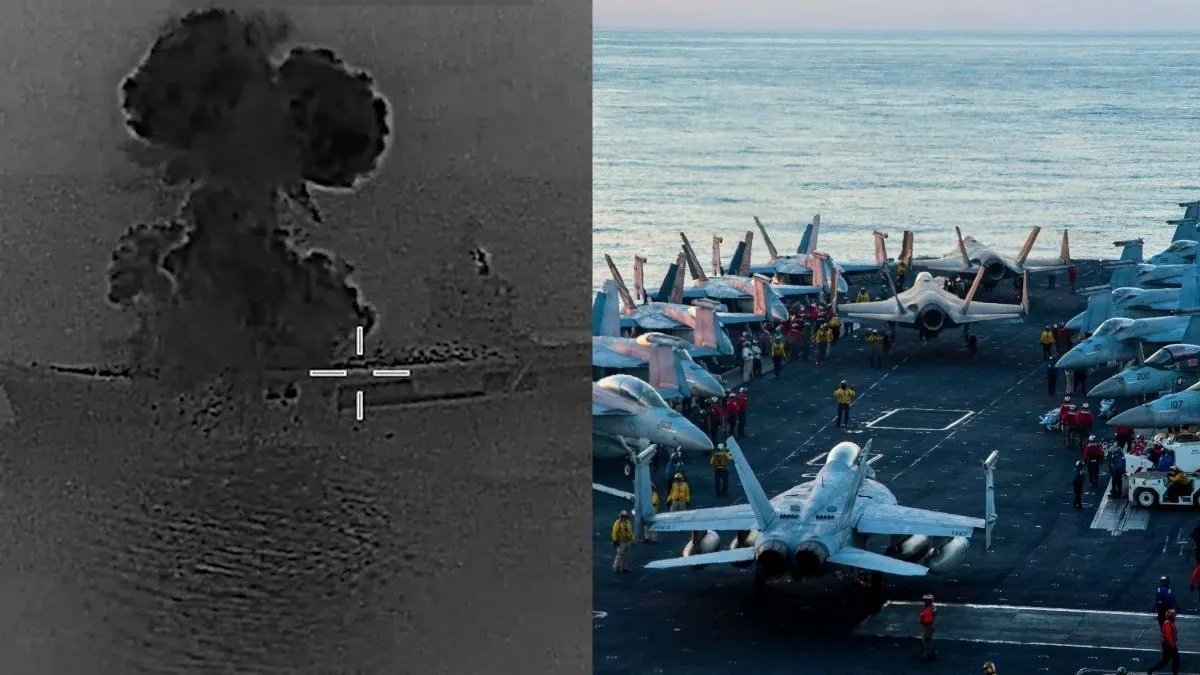 VIDEO: समंदर में अमेरिकी एक्शन! ईरानी ड्रोन कैरियर जहाज को उड़ाया, दुश्मन की नेवी को तबाह करने की चेतावनी