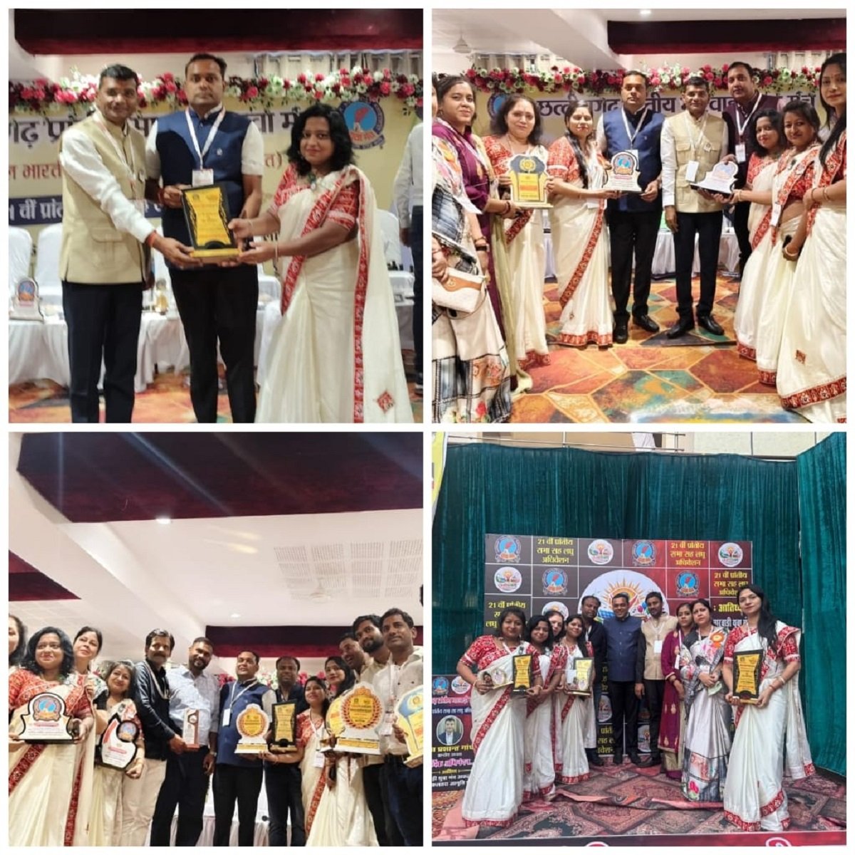 इसी के साथ-साथ मंच की प्रांतीय निर्देशक श्रीमती सुनीता मोदी को सर्वश्रेष्ठ प्रांतीय निर्देशिका का सम्मान एवं नारी चेतना प्रदेशसंयोजक श्रीमती शिखा अग्रवाल को श्रेष्ठ नारी चेतना सम्मान एवं अमृतधारा के तहत प्रदेशसहसंयोजक श्रीमती कल्याणी भोपालपुरिया को सर्वश्रेष्ठ अमृतधारा पुरस्कार से सम्मानित किया गया इस प्रांतीय अधिवेशन में राष्ट्रीय एवं प्रांतीय स्तर के अनेक पदाधिकारी उपस्थित थे सभी अतिथियों ने अपने संबोधन में मारवाड़ी युवा मंच जागृति शाखा नैला जांजगीर के साथ-साथ प्रदेश की अन्य शाखाओ द्वारा किए जा रहे अनेक कार्यों की मुक्त कंठ से प्रशंसा की इस उपलब्धि पर मारवाड़ी समाज एवं मंच के सदस्यों में हर्ष व्याप्त है और सभी ने पूर्व में किए गए कार्य को लगातार आगे बढ़ाने कीउम्मीद जताते हुए शाखा के उज्जवल भविष्य की कामना की है उक्त कार्यक्रम में राष्ट्रीय एवं छत्तीसगढ़ शाखा के महिला एवं पुरुष वर्ग के समस्त पदाधिकारी के साथ-साथ सदस्य गण मौजूद थे उक्त कार्यक्रम के समापन उपरांत महिला शाखा की कार्यकारी अध्यक्ष श्रीमती रीना केडिया ने छत्तीसगढ़शाखा एवं राष्ट्र से आये समस्त पदाधिकारी एवं सदस्यों का अभिवादन किया l