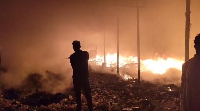 आग की लपटों में प्लास्टिक सामग्री सहित एक वाहन भी जलकर खाक हो गया. घटना की सूचना मिलते ही मौके पर दमकल की तीन गाड़ियां पहुंचीं और घंटों की कड़ी मशक्कत के बाद आग पर काबू पाया गया.