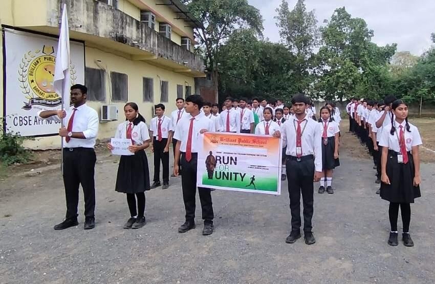 ब्रिलियंट पब्लिक स्कूल, बनारी, जाँजगीर में संस्था के संचालक श्री आलोक अग्रवाल, डॉ. गिरिराज गढ़ेवाल एवं प्राचार्या श्रीमती सोनाली सिंह के निर्देशन में दिनांक- 31 अक्टूबर 2025 को राष्ट्रीय एकता दिवस के उपलक्ष्य पर ‘‘रन फॉर यूनिटी‘‘ कार्यक्रम हर्षोल्लास के साथ सम्पन्न कराया गया। इस कार्यक्रम के अंतर्गत सर्वप्रथम संस्था के प्रार्थना प्रांगण में सरदार वल्लभ भाई पटेल के तैल्यचित्र पर दीप प्रज्जवलित कर माल्यार्पण किया गया।