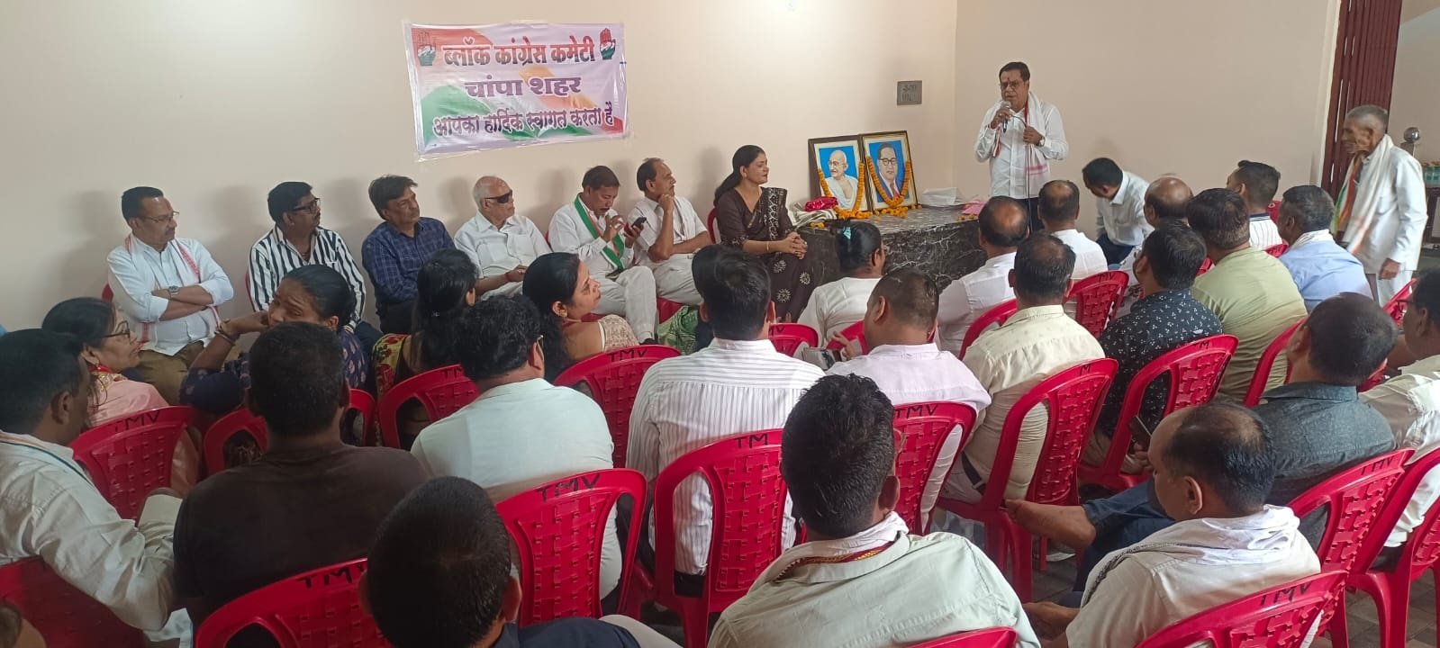 प्रदेश कांग्रेस कमेटी के आदेशानुसार व जिला कांग्रेस कमेटी के निर्देश पर आज ब्लॉक चांपा शहर में बैठक रखी गई सर्वप्रथम राष्ट्रपिता महात्मा गांधी, बाबा साहब भीमराव अम्बेडकर, जी के तैलीय चित्र पर माल्यार्पण फूल माला धूप दीप पुष्पांजलि करते हुए कार्यक्रम की शुरुवात की गई तत्पश्चात जिलाध्यक्ष श्री राजेश अग्रवाल, का श्री फल शाल से स्वागत ब्लॉक अध्यक्ष सुनील साधवानी, जिला महामंत्री नागेंद्र गुप्ता, सेवक बूटू देवांगन, सेक्टर प्रभारी ललित देवांगन, डुग्गू प्रधान, दुर्गा कुर्रे, संजय देवांगन, रंजन केवट, ने किया प्रभारी श्री राजेन्द्र शुक्ला, जी स्वागत 3नो मंडल अध्यक्ष श्री नारायण सोनी, अनिल मोदी, राज सरोज, द्वारा किया प्रभारी डॉ. काजल किरण सिंह, जी स्वागत पार्षद अंजली देवांगन, श्रीमती शांति सोनी, अनीता प्रकाश, रामबाई, स्वर्णकार, कविता देवांगन, द्वारा श्री फल शाल भेंटकर किया गया जिसमें प्रमुख रूप से जिलाध्यक्ष राजेश अग्रवाल, ने सभी को निर्देशित करते हुए बताया कि उदयपुर संकल्प शिविर से हर बूथ हर वार्ड में कमेटी बनाकर पार्टी मजबूती प्रदान करते हुए हर कार्यकर्ता 2028 के लिए कमर कस ले और जल्द से जल्द संगठन मजबूत करके कमेटी गठित कर सूची ब्लॉक अध्यक्ष को सौंपे, वार्ड व बूथ कमेटी के संबंध में विस्तार से चांपा ब्लॉक के प्रभारी श्री राजेन्द्र शुक्ला, ने उपस्थित कांग्रेसजनों को बताया और संगठन के बारे में अपनी बातें रखी प्रभारी डॉ. काजल किरण सिंह जी ने भी अपनी बातें रखते हुए उपस्थित कांग्रेसजनों को महिलाओं को संगठन में जोड़ने उनकी भागीदारी सुनिश्चित करने व हर बूथ वार्ड में नारी शक्ति को जवाबदारी प्रदान करने के लिए कहा जिला प्रवक्ता नागेंद्र गुप्ता, ने अपनी बातों को विस्तार रखते हुए हर बूथ सेक्टर मंडल को अपनी अपनी सूची जल्द से जल्द बनाकर संगठन को जमा करने को कहा मंच का संचालन ब्लॉक अध्यक्ष सुनील साधवानी, ने करते हुए उपस्थित सभी कांग्रेस जनों को विस्तार से संगठन सृजन के तहत बूथ सेक्टर मंडल वार्ड कमेटी का विस्तार संबंधित रूपरेखा कैसे तैयार की जाए और जल्द जल्द सूची बनाने निर्देशित किया कार्यक्रम का आभार मंडल अध्यक्ष अनिल मोदी, ने किया कार्यक्रम में मुखरूप से उपस्थित रहे राजेश अग्रवाल, प्रभारी राजेन्द्र शुक्ला, डॉ. काजल किरण सिंह, सुनील साधवानी, उपेन्द्र सिंग, ठाकुर नारायण सोनी अनिल मोदी, राज सरोज, जिला महामंत्री नागेंद्र गुप्ता, उपाध्यक्ष किशन सोनी, महामंत्री सेवक बूटू देवांगन, श्रीमती शांति सोनी, रामबाई स्वर्णकार, दुर्गा कुर्रे, ललित देवांगन, डुग्गू प्रधान, रंजन केवट, संजय देवांगन, भूपेंद्र चंद्रा, व्यापार प्रकोष्ठ जिलाध्यक्ष राज अग्रवाल, पार्षद अनिल रात्रे, अंजली देवांगन, पुरुषोत्तम 
