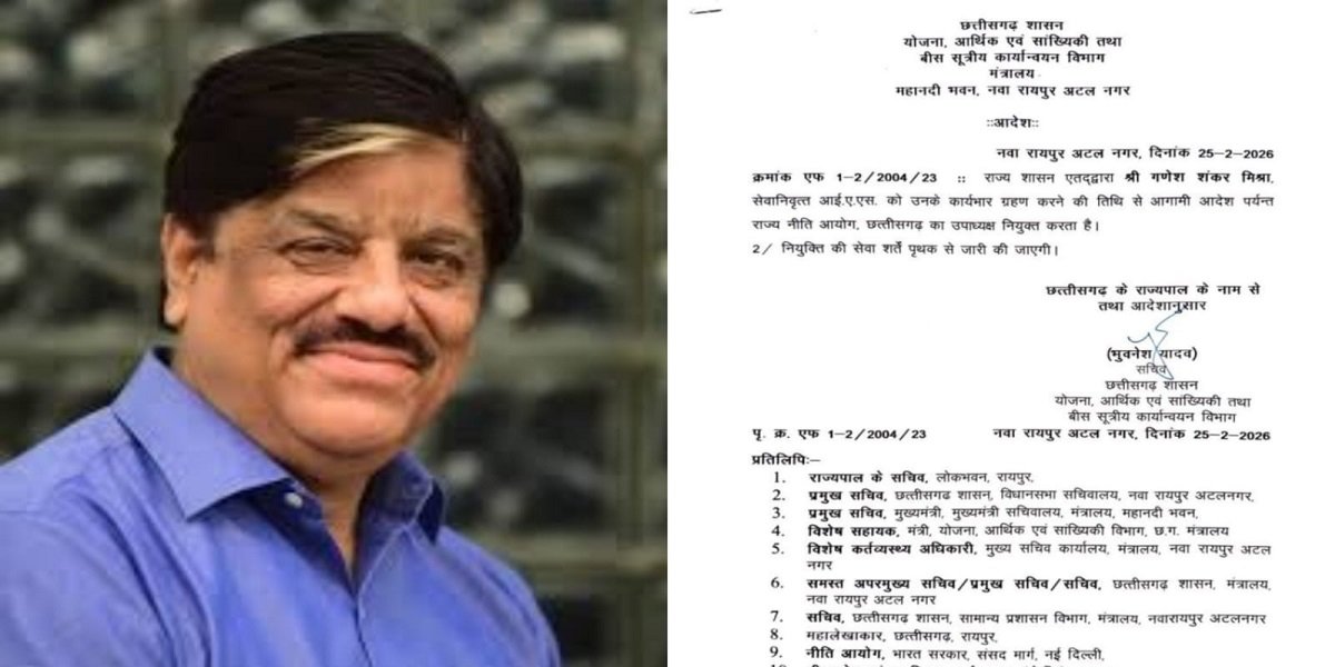 CG BREAKING : रिटायर्ड IAS गणेश शंकर मिश्रा बने छत्तीसगढ़ नीति आयोग के उपाध्यक्ष