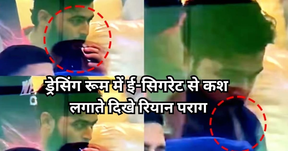 Riyan Parag Viral Video: IPL 2026 के एक हाई-वोल्टेज मुकाबले के बीच ऐसा नजारा देखने को मिला, जिसने क्रिकेट फैंस को हैरान कर दिया। राजस्थान रॉयल्स के कप्तान रियान पराग मैच के दौरान ड्रेसिंग रूम में वेप यानी ई-सिगरेट पीते करते हुए कैमरे में कैद हो गए, जिसके बाद यह वीडियो सोशल मीडिया पर तेजी से वायरल हो रहा है। चौंकानी वाली यह घटना 28 अप्रैल को राजस्थान रॉयल्स और पंजाब किंग्स के बीच खेले गए IPL 2026 के 40वें मुकाबले के दौरान सामने आई। राजस्थान की पारी के दौरान 16वें ओवर में पराग को ड्रेसिंग रूम में अपने साथियों ध्रुव जुरेल और यशस्वी जायसवाल के बीच आराम से ई-सिगरेट पीते देखा गया।