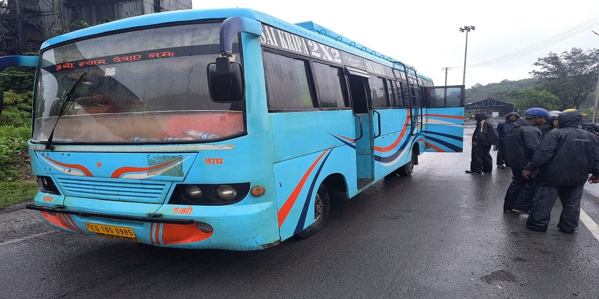 तेरह साल पुरानी बस से एसईसीएल के कामगारों को जा ढोया, बारिश की तेज धार भी बह रही बस अंदर