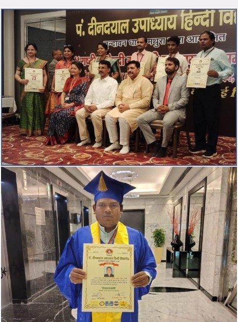 पंडित दीनदयाल उपाध्याय हिन्दी विद्यापीठ वृंदावन धाम द्वारा दिल्ली में आयोजित राष्ट्रीय हिन्दी संगोष्ठी एवं डाक्ट्रेट उपाधि सम्मान समारोह के मंच से मिला सम्मान