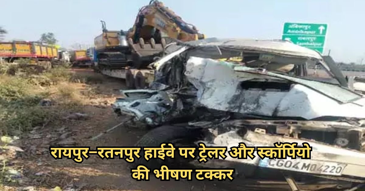 CG Road Accident : रायपुर–रतनपुर हाईवे पर ट्रेलर और स्कॉर्पियो की टक्कर, 4 की मौत, 1 घायल